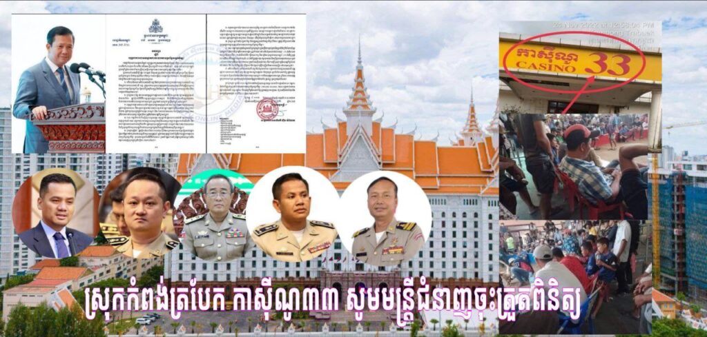 អង្គភាពអ្នកសារព័ត៌មានយើង សង្ឃឹមថាលោក ឧត្តមសេនីយ៍ឯក សុខ វាសនា អគ្គនាយកនៃអគ្គនាយកដ្ឋាននគរបាលអន្តោប្រវេសន៍សូមមេត្តាចាត់មន្ត្រីជំនាញ ចុះស៊ើបអង្គេត កាស៊ីណូ គ្មានស្លាកយីហោ ដែលមានរបងជញ្ជាំងសង្ក័សីពណ៌ខៀវខាងលើ ដោយក្តីអនុគ្រោះ ។
