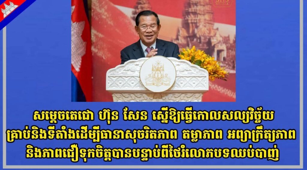 សម្តេចតេជោ ហ៊ុន សែន ស្នើឱ្យធ្វើកោលសល្យវិច្ច័យគ្រាប់និងទីតាំងដើម្បីធានាសុចរិតភាព តម្លាភាព អព្យាក្រឹត្យភាព និងភាពជឿទុកចិត្តបានបន្ទាប់ពីថៃរំលោភបទឈប់បាញ់——សម្តេចតេជោ ហ៊ុន សែន ប្រធានព្រឹទ្ធសភានៃកម្ពុជាតាមរយៈបណ្តាញសង្គមនៅយប់ថ្ងៃទី២៧ ខែកញ្ញា ឆ្នាំ២០២៥ បានបង្ហោះផ្សាយខ្លឹមសារដូចតទៅ៖ថ្ងៃនេះមានការរំលោភលើបទឈប់បាញ់ដោយប្រើកាំភ្លើងត្បាល់ និងកាំភ្លើងយន្ត។ នាយករដ្ឋមន្ត្រី ហ៊ុន ម៉ាណែត និងខ្ញុំបានកោះប្រជុំបន្ទាន់តាមអនឡាញណែនាំឲ្យកងទ័ពអត់ធ្មត់មិនតបត។ ក្រោយស្ងាត់កាំភ្លើង ភាគីទាំងសងខាងចោទគ្នាទៅវិញទៅមកថា បានរំលោភលើបទឈប់បាញ់។ ភាគីទាំងសងខាងសុទ្ធតែបានប្តឹងទៅក្រុមអ្នកសង្កេតការណ៍ (IOT) ជាពិសេសកម្ពុជាបានសុំយ៉ាងទទូចដើម្បីឲ្យក្រុម IOT ចុះទៅពិនិត្យផ្ទាល់។ដើម្បីធានាសុចរិតភាព តម្លាភាព អព្យាក្រឹត្យភាព និងភាពជឿទុកចិត្តបាន ខ្ញុំសូមជូនយោបល់ទៅថ្នាក់ដឹកនាំកងទ័ពម៉ាឡេស៊ី ដែលជាប្រធាន និងសមាជិក មកពីបណ្តាប្រទេសអាស៊ាននៃក្រុម IOT ធ្វើនូវកិច្ចការពីរ៖១. ធ្វើកោលសល្យវិច្ច័យគ្រាប់ ព្រោះប្រទេសទាំងពីរមានប្រើគ្រាប់ខុសគ្នា។២. ជាចំណុចសំខាន់គឺចុះពិនិត្យដល់ទីតាំងគ្រាប់ធ្លាក់ គេនឹងអាចដឹងបានថាគ្រាប់ចេញពីទិសដៅណា? បាញ់ពីកម្ពុជាទៅថៃ ឬបាញ់ពីថៃមកកម្ពុជា? គេមិនអាចទៅបង្វិលរណ្តៅគ្រាប់បានទេ។សូមកងទ័ពកម្ពុជារក្សាទុករណ្តៅគ្រាប់ឲ្យបានល្អ និងជួយបង្កលក្ខណៈឲ្យអ្នកសង្កេតការណ៍ IOT បានធ្វើកោសល្យវិច្ឆ័យគ្រាប់ និងពិនិត្យរណ្តៅគ្រាប់ឲ្យបានត្រឹមត្រូវ និងច្បាស់លាស់។ ខ្ញុំសង្ឃឹមថា ភាគីថៃនិងបង្ហាញនូវកាយវិការដូចគ្នា។ មាសសុទ្ធមិនខ្លាចភ្លើង ការបដិសេធណាមួយចំពោះការត្រួតពិនិត្យដោយអ្នកសង្កេតការណ៍ IOT មានន័យថា ខ្លួនជាអ្នកបាញ់រាប់ទាំងកម្ពុជា និងថៃ៕