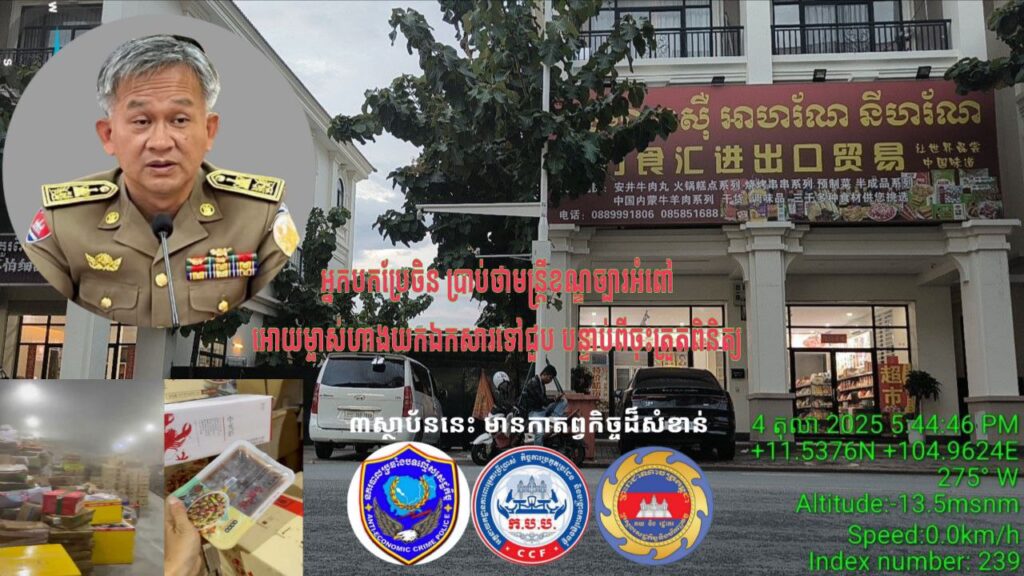 អង្គភាពអ្នកសារព័ត៌មានយើងស្នើសុំដល់អគ្គនាយកដ្ឋាន នគរបាលប្រឆាំងបទល្មើសសេដ្ឋកិច្ច សូមចាត់វិធាន ចុះត្រួតពិនិត្យ ឃ្លាំងស្តុកសាច់បង្កក ដែលមានទីតាំងខាងលើ ដោយក្តីអនុគ្រោះ។