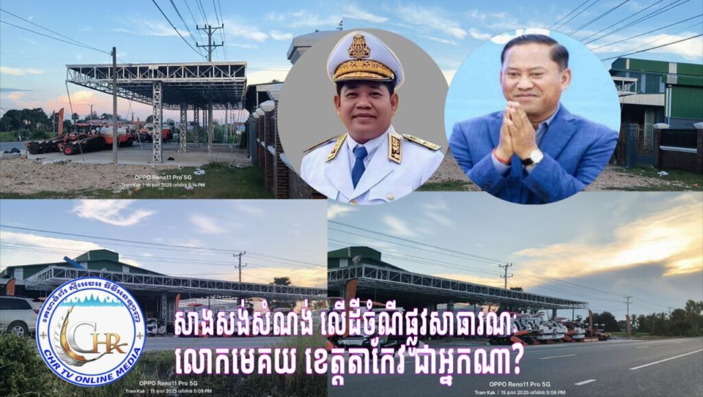 ម្ចាស់ឃ្លាំងមានឥទ្ធិពល ដែលគេស្គាល់ថា ជាមេគយប្រចាំខេត្តតាកែវ ហ៊ានសាងសង់សំណង់រំលោភបំពាន លើដីចំណីផ្លូវសាធារណ:រូបនេះ ដែលកំពុងបញ្ជេញសកម្មភាព បំពានច្បាប់ សូម្បីតែដីចំណីផ្លូវសាធារណ: ក៏មិនលើកលែង តើមេគយរូបនេះ មានខ្នងក្រាស់ប៉ុណ្ណា ? ក្នុងនាមជាមន្ត្រីដែលជាអ្នកអនុវត្តច្បាប់នៃស្ថាប័នមួយ ។