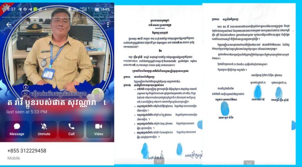 យោងតាមការរៀបរាប់ របស់ជនរងគ្រោះនៅថ្ងៃទី២១ខែវិច្ឆិកាឆ្នាំ២០២៤ ហើយអង្គភាពសារព័ត៌មានយើង បានផ្សាយចេញនៅថ្ងៃឬី២៣ខែឆ្នាំដដែរ នាងខ្ញុំមឈ្មោះ ញឹម បូរ៉ាវី ភេទស្រី អាយុ ៣០ឆ្នាំ ត្រូវជាកូនរបស់លោកឪពុកជនរងគ្រោះ ឈ្មោះញឹម ប្រុស ដែលបានប្រគល់លុយអោយបុគ្កលពីរនាក់ប្តីប្រពន្ធនាងខ្ញុំដែលបានស្គាល់ឈ្មោះផាត រ៉ាវី ភេទ ប្រុស អាយុ៤០ឆ្នាំ ក្នុងការស្គាល់គ្នានោះលោកផាត់ រ៉ាវី បានណែនាំអោយនាងខ្ញុំនិងឪពុក ទំនាក់ទំនងបងប្រុសខ្លួនអោយរត់ការចូលបំរើការងារក្នុងក្រមខ័ណ្ឌនគបាល ដែលនិយាយក្នុងតម្លៃរត់ការនោះចំនួនទឹកប្រាក់៨000 USD (ប្រាំបីពាន់ដុល្លារអាមេរិក)ហើយនាងខ្ញុំនិងឪពុកក៏បានជឿទុកចិត្តក៏បានទៅផ្ទះបុគ្គលឈ្មោះផាត សុវណ្ណារ៉ា និងភរិយា បន្តមកពួកយើងក៏និយាយគ្នារឿងរត់ការចូលក្របខ័ណ្ឌប៉ូលិសរួចរាល់ លោកផាត សុវណ្ណរ៉ា បានដាក់ថ្ងៃកំណត់អោយពួកខ្ញុំប្រគល់ទឹកប្រាក់ចំនួន៨000 USD (ប្រាំបីពាន់ដុល្លារអាមេរិក)ក្នុងនោះមានឈ្មោះផាត រ៉ាវី និងលោកផាត សុវណ្ណារ៉ានិងភរិយា ព្រមទាំងកូន បន្ទាប់ពីប្រគល់ប្រាក់រួច លេខទូរស័ព្ទធ្លាប់តែទំនាក់ទំនងគ្នា ក៏ខលលែងចូល ទើបពឹងពាក់សារព័ត៌មានអោយផ្សព្វផ្សាយ សូមក្តីអន្តរាគមន៍ ដើម្បីជូនដំណឹងដល់ថ្នាក់ដឹកនាំគ្រប់ជាន់ថ្នាក់ ពីទង្វើរបស់បងប្អូនទាំងពីរនាក់។