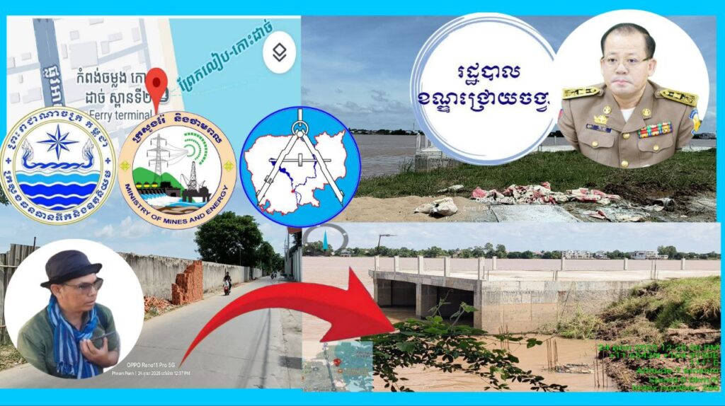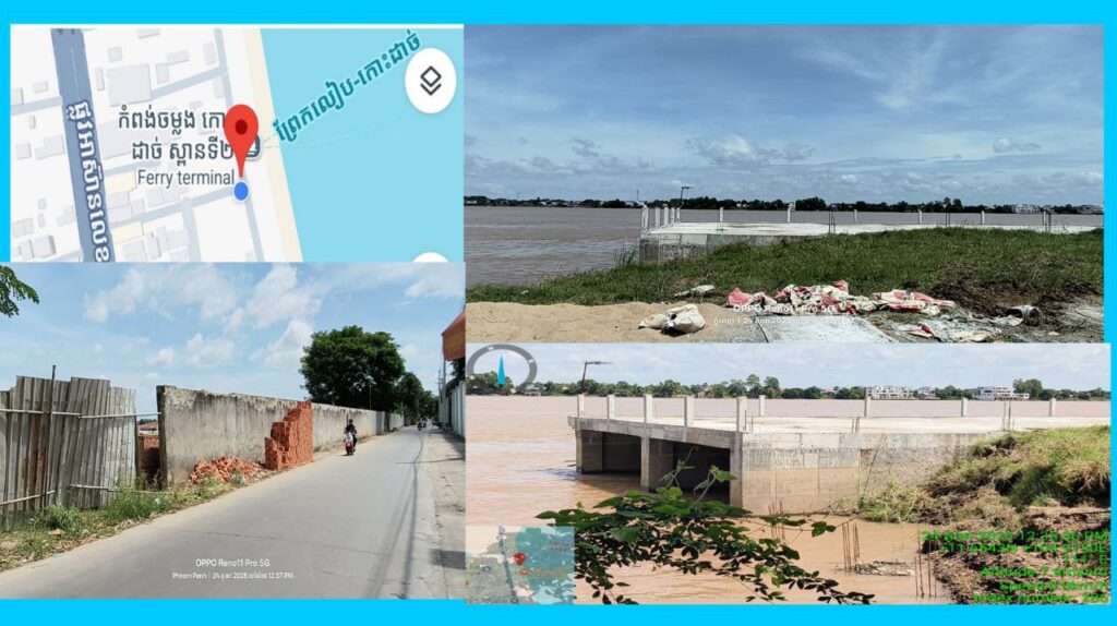 រាជធានីភ្នំពេញ:ព័ត៌មានបឋម សំណង់រឹងបុកគ្រិះសាងសង់ចូលច្រាំងទន្លេ នៅសង្កាត់ព្រែកលៀប ខណ្ឌជ្រោយចង្វារ រាជធានីភ្នំពេញ តើជាការទប់ស្កាត់ដី កុំអោយបាក់ចូលទន្លេ មួយកន្លែងនេះ មានច្បាប់អនុញាតឬមួយយ៉ាងណា? បន្ទាប់ពីអង្គភាពសារព័ត៌មានស៊ីអេចអធីវី ចុះទៅដល់ទីតាំងផ្ទាល់ នៅថ្ងៃទី២៤ខែតុលាឆ្នាំ២០២៥ និងសូមធ្វើសេចក្តីរាយការណ៍ ជូន អាជ្ញាធរមូលដ្ឋាន និងមន្ត្រីជំនាញគ្រប់ស្ថាប័នពាក់ព័ន្ធ សូមមេត្តាចុះត្រួតពិនិត្យ។