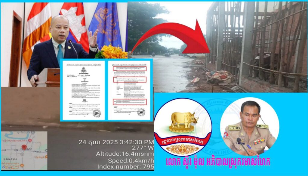 ម្ចាស់សំណង់ដ៏មានឥទ្ធិពល ហ៊ានសាងសង់សំណង់រំលោភបំពាន លើដីចំណីផ្លូវសាធារណ: ផ្លូវជាតិលេខ១៣ ដែលជាទង្វើផ្ទុយ ពីច្បាប់សាងសង់សំណង់ តើមន្ត្រីរូបណាចេញលិខិតអនុញាតទៅអោយម្ចាស់ដី នៅក្នុងចំនុចនេះ អង្គភាពសារព័ត៌មានស៊ីអេចអធីវី ស្នើសុំដល់ភូមិបាលស្រុក រមាសហែក និងលោកមិញ ស៊ីចាយ ប្រធានមន្ទីររៀបចំដែនដី នគរូបនីយកម្ម និងសំណង់ខេត្តស្វាយរៀង ចុះត្រួតពិនិត្យ ដោយក្តីរាប់អាន។
