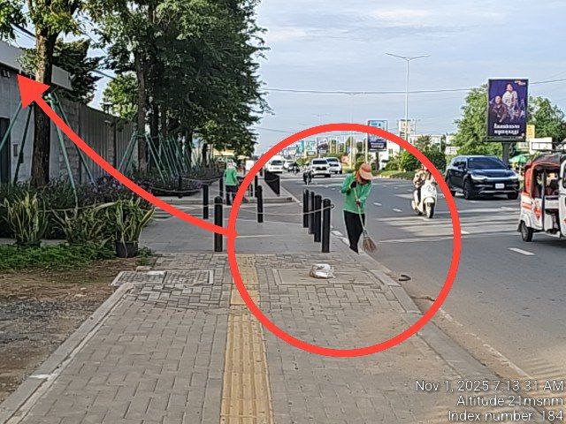 ខណ្ឌជ្រោយចង្វារ: ភូមិគ្រិះដ៏ស្គឹមស្គៃ មួយកន្លែង នៅចន្លោះគីឡូម៉ែត្រ១៩តាមបណ្តោយផ្លូវជាតិលេខ៦ A ស្ថិត សង្កាត់បាក់ខែង ខណ្ឌជ្រោយចង្វារ មានករណីបោះបង្គោលដែក ចំណតម៉ូតូ រំលោភលើដីចំណីផ្លូវសាធារណៈ យ៉ាងគឃ្លើន សូមមន្ត្រីជំនាញ ចុះត្រួតពិនិត្យផងទាន ។