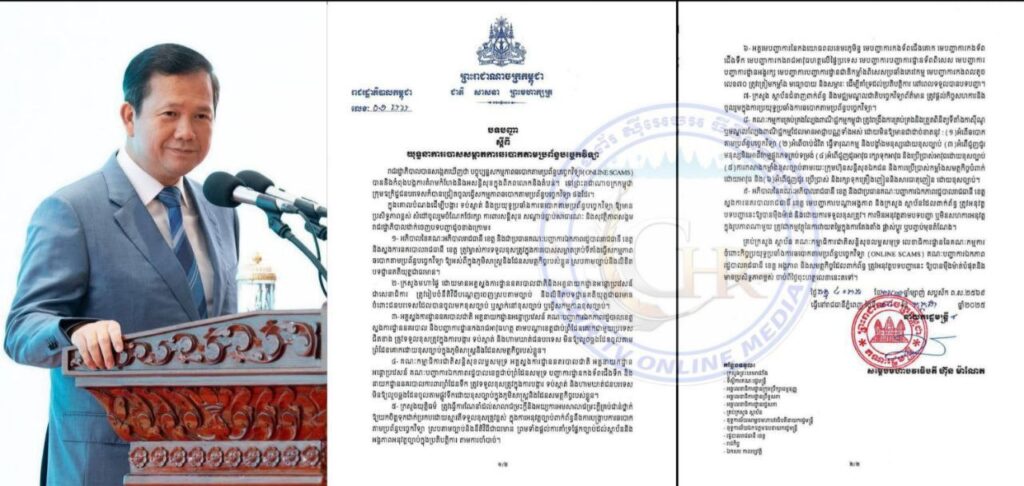 យោងបទបញ្ចាលេខ:០១ ចុះនៅថ្ងៃទី១៤ខែកក្តដាឆ្នាំ២០២៥ របស់សម្ដេចធិបតី ហ៊ុន ម៉ាណែត នាយករដ្ឋមន្ត្រី នៃ រាជរដ្ឋាភិបាល បានចេញបទបញ្ជាឱ្យបោសសម្អាតការឆបោកតាមប្រព័ន្ធបច្ចេកវិទ្យា (Online Scams) ឱ្យបានម៉ឺងម៉ាត់បំផុត និងប្រសិទ្ធភាពបំផុត ។