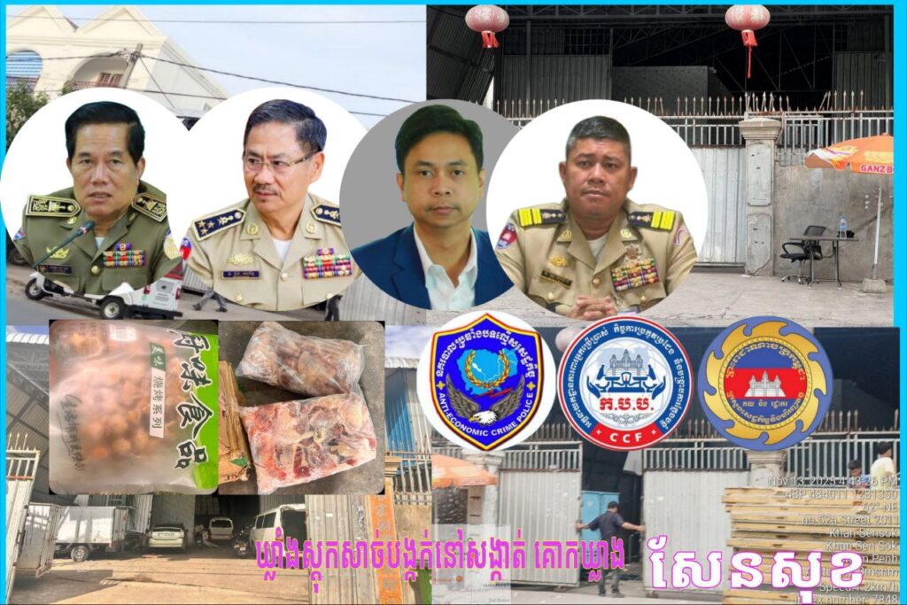 រាជធានី ភ្នំពេញ÷ អង្គភាពសារព័ត៌មានយើង សូមធ្វើសេចក្តីរាយការណ៍ជូន ថ្នាក់ដឹកនាំគ្រប់ជាន់ថ្នាក់ ក្នុងករណី ទីតាំងសាច់បង្កក់មួយកន្លែង ស្ថិតនៅតាមបណ្តោយផ្លូវ<ឧកញ៉ា ទ្រីហេង .២០១១> សង្កាត់គោកឃ្លាង ខណ្ឌសែនសុខ រាជធានីភ្នំពេញ ដែលមានប្តីជាជនជាតិចិននិងប្រពន្ធជនជាតិខ្មែរ ជាម្ចាស់ឃ្លាំង ដោយទីតាំងខាងលើ ត្រូវសមត្ថកិច្ចនិងមន្ត្រីជំនាញ <ក.ប.ប >ធ្លាប់ចុះត្រួតពិនិត្យនាពេលកន្លងមកផងដែរ ឃ្លាំងស្តុកសាច់បង្កក់គ្មានស្លាកយីហោ មួយកន្លែងនេះ កំពុងតែទាក់ទាញ ចំណាប់អារម្មណ៍ ដល់ប្រជាពលរដ្ឋ យ៉ាងខ្លាំង ទៅលើបណ្តាញ ទំនាក់ទំនងផ្សព្វផ្សាយសង្គម នៅក្នុងនោះ ឃ្លាំងគ្មានស្លាកយីហោ ជាច្រើនដែលរកស៊ីគេចពន្ធ ឬបង់ពន្ធមិនគ្រប់ ដែលជាហេតុមន្ត្រីជំនាញ មិនបានត្រួតពិនិត្យ ដិតដល់ធ្វើអោយប៉ះពាល់ដល់សុខភាពប្រជាពលរដ្ឋ អ្នកប្រើប្រាស់ យកទៅបរិភោគជាដើម ។