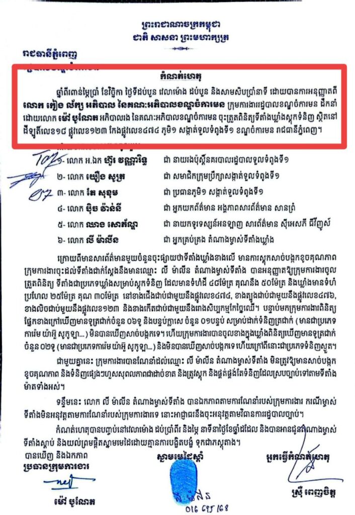 អង្គភាពអ្នកសារព័ត៌មានយើង ស្នើសុំដល់ឯកឧត្តម អភិសន្តិបណ្ឌិត សសុខា ឧបនាយករដ្ឋមន្ត្រីរដ្ឋមន្ត្រីក្រសួងមហាផ្ទៃ សូមមេត្តា ចាត់មន្ត្រីជំនាញចុះអធិការកិច្ច ត្រួតពិនិត្យ ក្នុងករណីបង្ក្រាបខាងលើដោយក្តីអនុគ្រោះ។