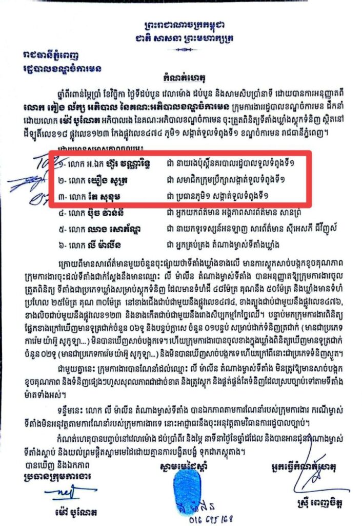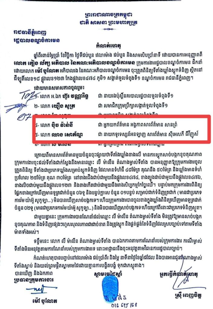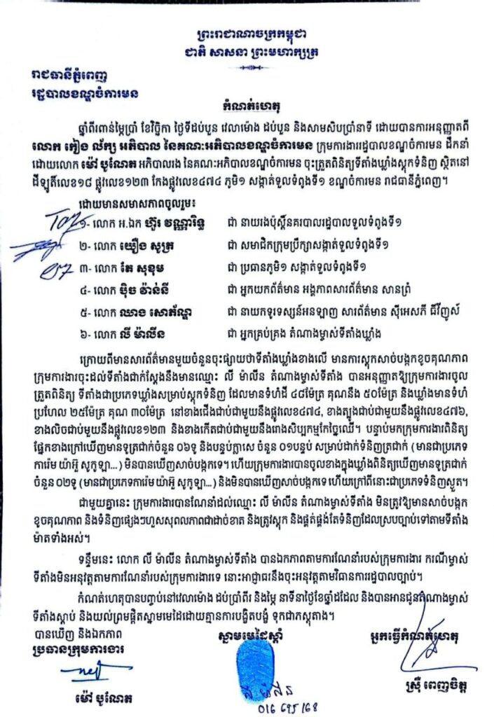 អង្គភាពអ្នកសារព័ត៌មានយើង ស្នើសុំគណៈមេបញ្ជាការឯកភាព ឯកឧត្តម ឃួង ស្រេង អភិបាលរាជធានីភ្នំពេញ និងឧត្តមសេនីយ៍ឯកជួន ណារិន្ទ អគ្គស្នងការរង និងជាស្នងការដ្ឋានរាជធានីភ្នំពេញ សូមចុះអធិការកិច្ច ចាត់មន្ត្រីជំនាញ ចុះទៅពិនិត្យចំពោះទីតាំងខាងលើដោយក្តីអនុគ្រោះ។