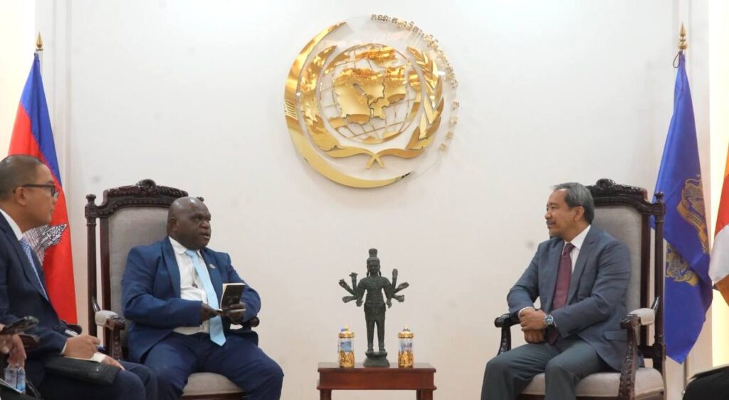 លោកទេសរដ្ឋមន្ត្រី កែវ រ៉េមី ប្រធានគណៈកម្មាធិការសិទ្ធិមនុស្សកម្ពុជា បានជួបជាមួយ លោក Natalius Pigai រដ្ឋមន្ត្រីក្រសួងសិទ្ធិមនុស្ស នៃសាធារណរដ្ឋឥណ្ឌូណេស៊ី នៅព្រឹកថ្ងៃទី២៤ ខែវិច្ឆិកា ឆ្នាំ២០២៥ ពិភាក្សាផ្លាស់ប្តូរទស្សនៈ បទពិសោធ និងការ អនុវត្តល្អៗ ព្រមទាំងស្វែងរកកិច្ចសហប្រតិបត្តិការលើវិស័យសិទ្ធិមនុស្សរវាងប្រទេសទាំងពីរ។