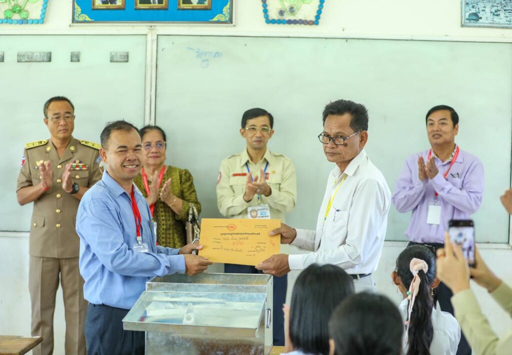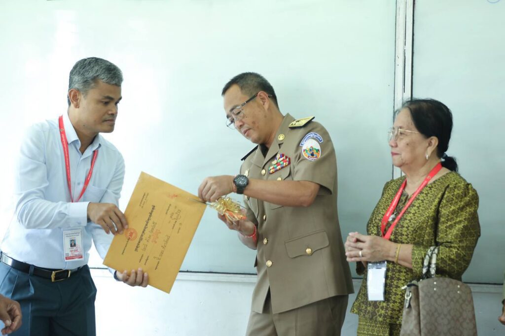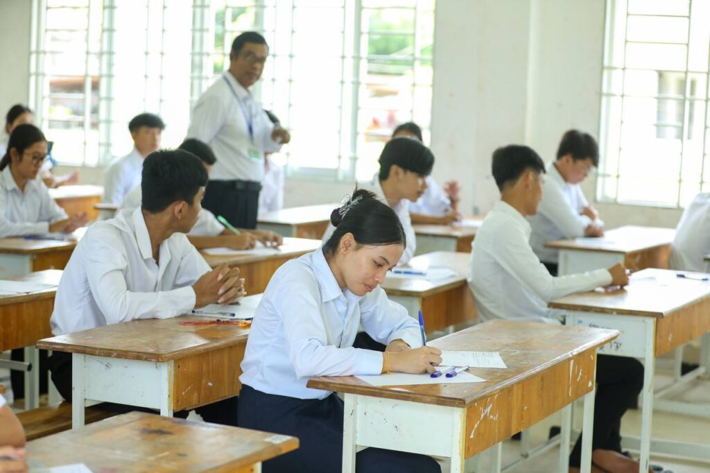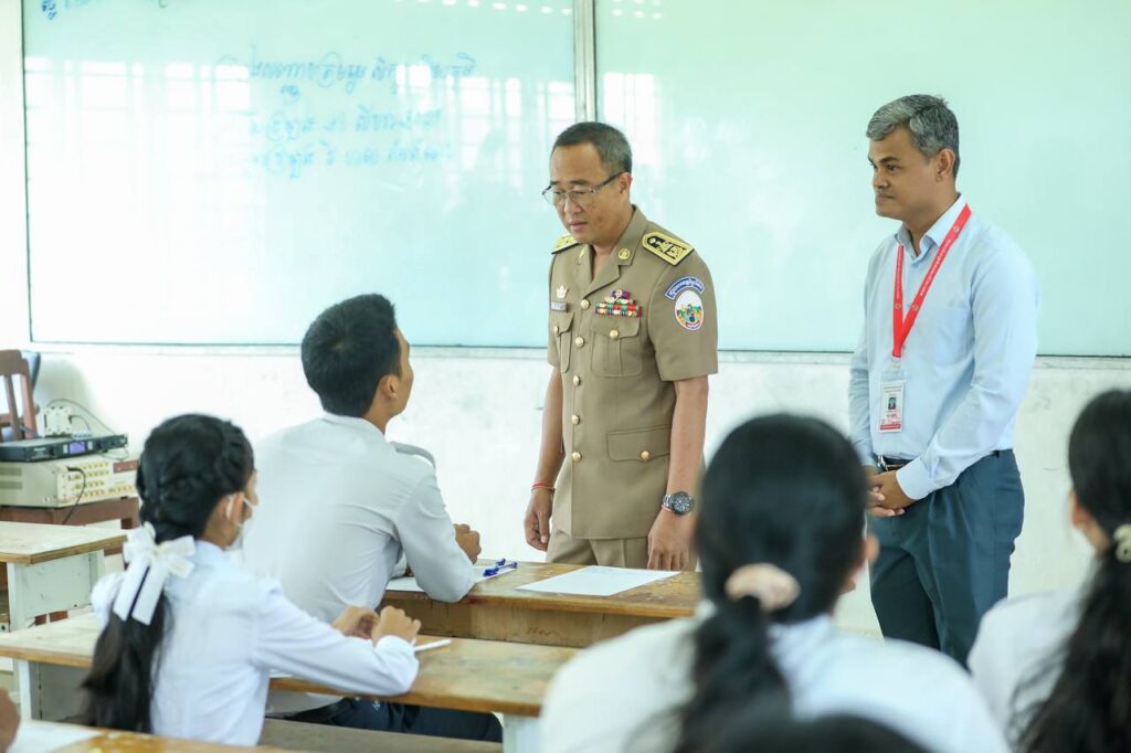 ខេត្តព្រៃវែង៖ ព្រឹកថ្ងៃទី២៨ ខែសីហា ឆ្នាំ២០២៥ ឯកឧត្តម សួន សុម៉ាលីន អភិបាល នៃគណៈអភិបាលខេត្តព្រៃវែង និងលោកជំទាវ ទន់ សាអុីម អនុរដ្ឋលេខាធិការក្រសួងអប់រំ យុវជន និងកីឡា និងជាប្រធានគណៈមេប្រយោគទូទាំងប្រទេសប្រចាំខេត្តព្រៃវែង បានអញ្ជើញជាអធិបតីកាត់វិញ្ញាសារប្រឡងសញ្ញាបត្រមធ្យមសិក្សាទុតិយភូមិ ចំណេះដឹងទូទៅ និងបំពេញវិជ្ជា នៅមណ្ឌលប្រឡងវិទ្យាល័យ សម្ដេចតេជោ ហ៊ុន សែន កំពង់លាវ ស្ថិតនៅភូមិលេខ៨ សង្កាត់កំពង់លាវ ក្រុងព្រៃវែង ខេត្តព្រៃវែង។