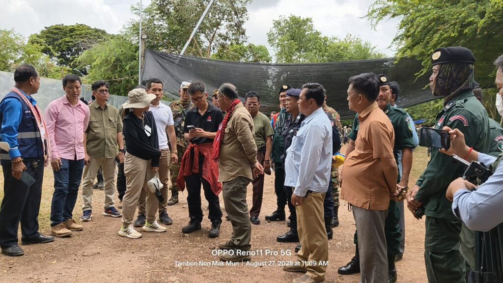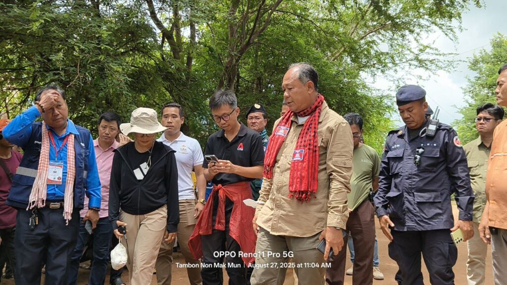 ខេត្តបន្ទាយមានជ័យ :ប្រតិភូសារព័ត៌មានអន្តរជាតិ Channelnewsasia (CNA )សិង្ហបុរីអមដំណើរដោយ ឯកឧត្តម អ៊ុំ រាត្រី អភិបាលនៃគណៈអភិបាលខេត្ត ព្រមទាំងមន្រ្តីក្រសួងព័ត៌មាន អញ្ជើញចុះថតទិដ្ឋភាពព័ត៌មាន នៅក្នុងភូមិជោគជ័យ និងភូមិព្រៃចាន់ ឃុំអូរបីជាន់ ស្រុកអូរជ្រៅ ខេត្តបន្ទាយមានជ័យ នៅថ្ងៃទី២៧ ខែសីហា ឆ្នាំ២០២៥។