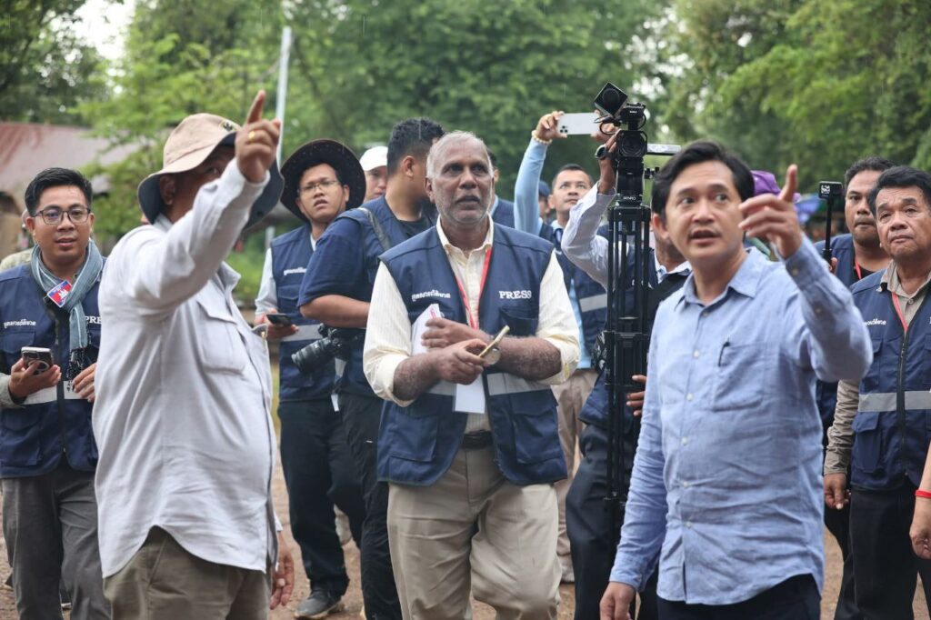 (បន្ទាយរមានជ័យ)៖ ក្រោយបញ្ចប់បេសកកម្មចុះយកព័ត៌មានដោយផ្ទាល់នៅវត្តអារាម សាលារៀន មណ្ឌលសុខភាព និងទីតាំងផ្សេងទៀត ដែលរងការបំផ្លិចបំផ្លាញដោយគ្រាប់ផ្លោង និងការទម្លាក់គ្រាប់បែកពីលើយន្តហោះពីសំណាក់ទាហានថៃ នាពេលកន្លងមក នៅស្រុកបន្ទាយអំពិល ខេត្តឧត្តរមានជ័យ នៅរសៀលថ្ងៃទី២៩ ខែសីហា ឆ្នាំ២០២៥នេះ ក្រុមអ្នកសារព័ត៌មានមកពីប្រទេសចិន សិង្ហបុរី ឥណ្ឌូនេស៉ី ម៉ាឡេស៉ី វៀតណាម ព្រមទាំងអ្នកសារព័ត៌មានកម្ពុជាជាច្រើននាក់ បានបន្តចុះយកព័ត៌មានទៅខេត្តឧត្តរមានជ័យ ដើម្បីពិនិត្យ និងធ្វើទស្សនកិច្ចទីតាំងដោយផ្ទាល់ទីតាំងភូមិព្រៃចាន់ និងភូមជោគជ័យ ឃុំអូរបីជាន់ ស្រុកអូរជ្រៅ ដែលត្រូវកងទ័ពថៃ រាយបន្លាលួសព័ទ្ធយកដី និងផ្ទះប្រជពលរដ្ឋខ្មែរ បន្ទាប់ពីបទឈប់បាញ់រវាងកងទ័ពទាំងពីរជាធរមាន។
