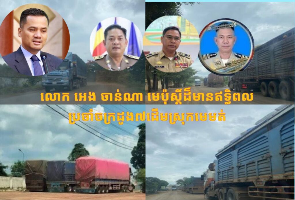 ខេត្តត្បូងឃ្មុំ :លោក អេង ចាន់ណា មេប៉ុស្តិ៍នគរបាលការពារព្រំដែនទ្វេភាគីដា ហៅច្រកដូង៧ដើម ស្រុកមេមត់ ខេត្តត្បូងឃ្មុំ ដ៏មានឥទ្ធិពល កាន់តំណែងដុះស្លែ ពង្រាយមន្រ្តីក្រោមឱវាទនិងប្រើជនស៊ីវិលអង្គុយរាប់ក្បាលឡាន ប្រព្រឹត្តរបៀបអំពើពុករលួយ ជិះសេះលែងដៃ.