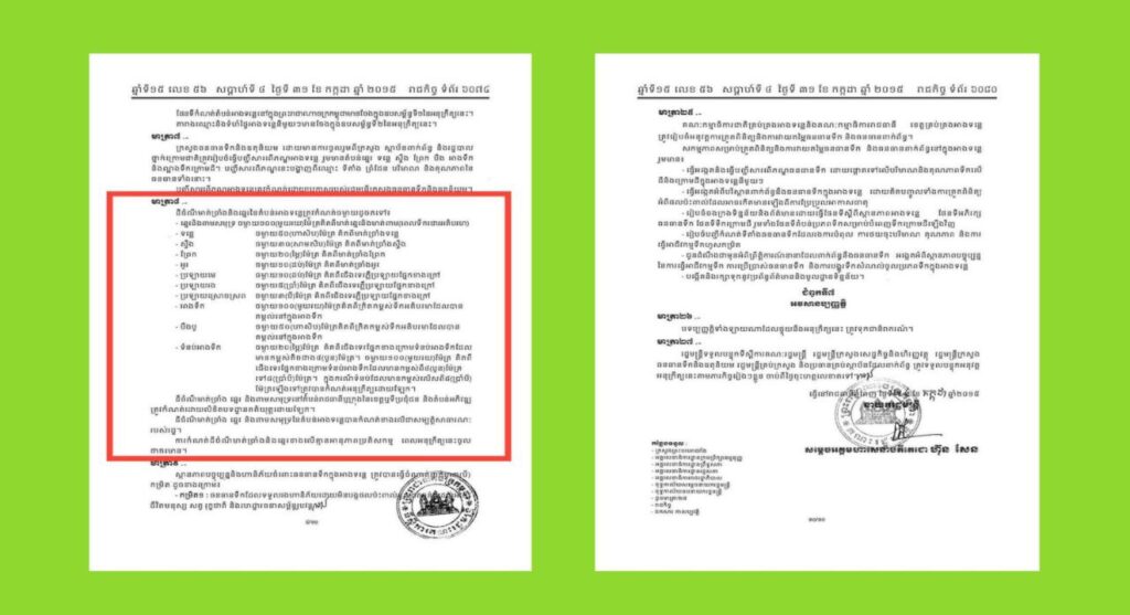 យើងក្រឡេកមុខមើលអនុក្រឹត្យ លេខ៩៨ អ.ន.ក្រ.ប.ក មាត្រាទី៨ ចុះថ្ងៃទី២៤ ខែ កក្កដា ឆ្នាំ២០១៥ និងសារាចរណែនាំ ស្ដីពីការអភិវឌ្ឍន៍តំបន់ឆ្នេរសមុទ្រនៃព្រះរាជាណាចក្រកម្ពុជា លេខ០១ ស.រ.ណ.នចុះថ្ងៃទី៣ ខែកុម្ភៈ ឆ្នាំ២០១២ របស់សម្ដេចអគ្គមហាសេនាបតីតេជោ ហ៊ុន សែន អតីតនាយករដ្ឋមន្ត្រី នៃព្រះរាជាណាចក្រកម្ពុជា និងបច្ចុប្បន្ន ជាប្រធានព្រឹទ្ធសភានៃកម្ពុជា។